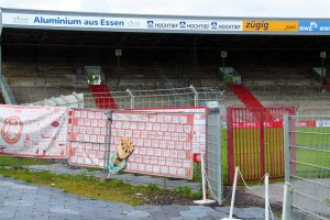 Das letzte Saisonspiel an der Hafenstrasse ist gelaufen, und per Zufall fiel mir heute beim Versuch, etwas Ordnung in das “gebrannte Digitale” zu bringen, eine CD mit der Aufschrift „RWE“ vor und auf die Füße: Was für Bilder, erfüllen sie kaum qualitativ höhere Ansprüche, erzählen aber doch das RWE Drama eines Jahres: Abstieg gegen Lübeck, Neubeginn in Lotte, Peters Krankheit, Euphorie und Elend. Lethargie und Wut. Die Bilder, die mich immer wieder am meisten fesseln sind aber die der Hafenstrasse. Daher wieder einige Eindrücke, die gut die Rentenansprüche des Georg Melches Stadions verdeutlichen. Einige Bilder davon sind auf der wunderschönen “Fussball Landschaft” zu sehen.Einer Seite, die für den Grimme Online Award 2009 nominiert ist. Über einen “Besuch” und Stimmabgabe dort würde ich mich sehr freuen.