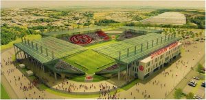 Andernorts einfach nur Stadionbau genannt, funktioniert auch ein solches Vorhaben an der Hafenstrasse nicht einfach nur nach Plan. Schließlich sollte das neue Stadion schon seit 2006 stehen, Spielort für die Damen WM werden und, und, und. Das bis heute nichts daraus wurde ist dem stetigen Ligenwechsel mit Trend nach “Unten”, Wahlkampfperioden und auch präsidialen Worthülsen zu verdanken. Das hat zur Folge, dass die Fans dieses Thema im Forum mit bisweilen beissenden Spott angehen. Stand der Dinge bis gestern Abend. Da gab es dann die Saisoneröffnung des Vereines auf Sponsorenebene am Seaside Beach Baldeney. Und es gab diesen Satz des Stadtdirektors, der da verkündete: “„Wir bauen das Stadion und machen am 8. August im Rahmen des 1. Saisonspiels den symbolischen Anstoß dazu.“ Der symbolische Anstoß wird nicht als Spatenstich stattfinden, auch hier geht der RWE andere Wege: Eine Mauer (oder der ewige Bock der Bonan Ära?) soll umgestoßen werden um den Beginn der Arbeiten zu unterstreichen. Ich bin sehr gespannt darauf, welche zweite Mauer in unserer Republik fallen wird. Hoffentlich keine tragende, noch brauchen wir das GMS. Der Virus RWE konnte auch schon Einsicht in die Pläne (Baustufe 1) nehmen: