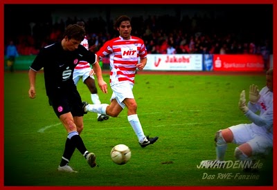 Nach unsicherer Anfangsviertelstunde kam das Team von Waldemar Wrobel besser ins Spiel, ohne sich dabei zunächst jedoch klare Torchancen herauszuspielen. Doch Lukas Lenz nutzte gleich die erste große Möglichkeit und knallte aus der Drehung den Ball zum verdienten 1:0 unter die Latte (37.). Wenig später tauchte Lenz erneut frei vor WSV-Schlussmann Sascha Samulewicz auf. Der konnte den Schuss des starken Essener Goalgetters zwar noch abfälschen, aber nicht mehr parieren (43.).