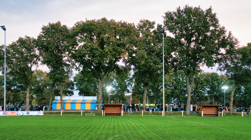 Sie versorgten sich also, egal ob Anhänger eines Internet-Phänomens oder eben klassischer Fußballfan. Was vielleicht auch die Musikauswahl vor Spielbeginn erklärt, war doch Otto mit seiner Hymne an den Alkohol zu hören. Vor oder nach Geier Sturzflug, ich weiß es nicht mehr so genau. Auf jeden Fall werde ich nie wieder über die Playlist anne Hafenstraße schimpfen. Ich bin trotzdem geneigt zu behaupten, dass es am Ende allen tatsächlich doch um den Fußball ging und nicht nur um reinen Personenkult oder den Alkohol. Denn zum einen fielen die Protagonisten gar nicht auf, was einen wirklichen Mehrwert ergab. Die sind also immer so wie sie sind. Egal ob die Kamera läuft oder nicht. Macht das Ganze schon mal authentisch und wirklich sympathisch. Und der Hauptplatz des SuS Steenfelde, da haben wir eine wirkliche Perle der Kreisklasse. Ganz besonders im Herbst, wenn sich der üppige Baumbestand drumherum in seinen schönsten Farben zu zeigen beginnt.