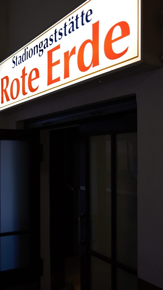 Die Sitzbänke allesamt aus bisweilen verblichenem Holz und eine Stadionkneipe, die nicht nur das Herz, sondern bestenfalls auch kalte Hände zur Halbzeit erwärmt. Schon aus der Zeit gefallen, wenn sich Spieler und aus der Kneipe kommende Fans denselben Gang auf das Spielfeld und die Tribüne teilen, nur getrennt durch ein hüfthohes Gitter. Das ist Fußball zum Anfassen in Reinkultur. Täte so manch abgedrehten Personen im Business Fußball gut, hier mal zur Halbzeit vorbeizuschauen. Ist es nun das schönste Stadion Deutschlands? Nein, das ist natürlich das Stadion an der Hafenstraße. Weil zuhause immer am schönsten ist. Aber das Stadion Rote Erde ist ein Ort, an dem Fußball fast automatisch bei Betreten zu dem Sport wird, in den wir uns damals hemmungslos verliebt haben.